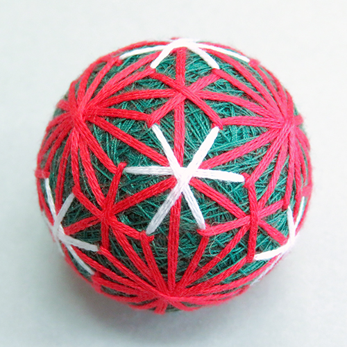 地まりが某名門大学のスクールカラーのてまり。同窓会の記念品として受注をいただきました。